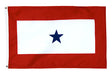 History of the Service Banner: The tradition of the Service Banner dates back to World War I. Mothers of young soldiers stitched red, white, and blue banners to hang in their windows as a sign that a loved one had gone to fight in the war. The banner design was simple, a white flag with a red border and a single blue star for each family member in Service. One, two and three stars were common, but each flag could hold up to six stars. This tradition was later extended to the wives and families of servicemen serving during the war. This tradition encountered a huge resurgence in World War II and again during the Korean War. Even during Desert Storm some U.S. ships sent service flags to the families of everyone aboard. The banner was designed by Captain R.L. Queisser and copyrighted in 1917.
