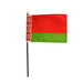 Our Belarua Flags from Flags Unlimited are available in sizes from 4 inches by 6 inches up to 5 feet by 8 feet. We offer the Belarus Flag in Durable Nylon material or Budget Polyester material. Indoor Belarus flags with a pole sleeve and gold fringe are also available.