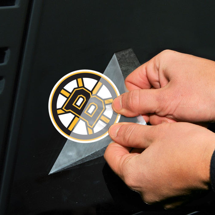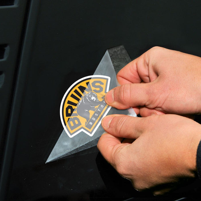 This set of two (2) Boston Bruins licensed 4"x4" Die Cut decals are made of outdoor vinyl, permanent adhesive, image cut to the outside dimension of logo, full color detail is printed with a 3 year outdoor rating. Supplied with a clear liner, clear transfer tape, and application instructions are on the back of the card and online.