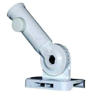 This bracket is adjustable to multiple positions for maximum flexibility. Fits any of our 1" diameter poles. The bracket is made from cast aluminum, available in Silver or White. The bracket can adjust at multiple angles within a 90 degree range. NOTE: Product appearance may vary slightly.