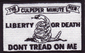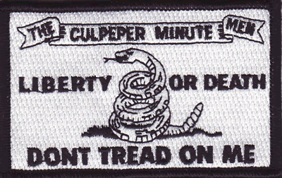 This 3'x5' Culpeper flag is richly steeped in the history of our wonderful country. Made from durable nylon material. Two grommets on the left edge so that your flag can hang with ease and our 4"x6" flag comes with a 10" staff with a gold spear top. Embroidered patches also available. 100% Made in the USA.