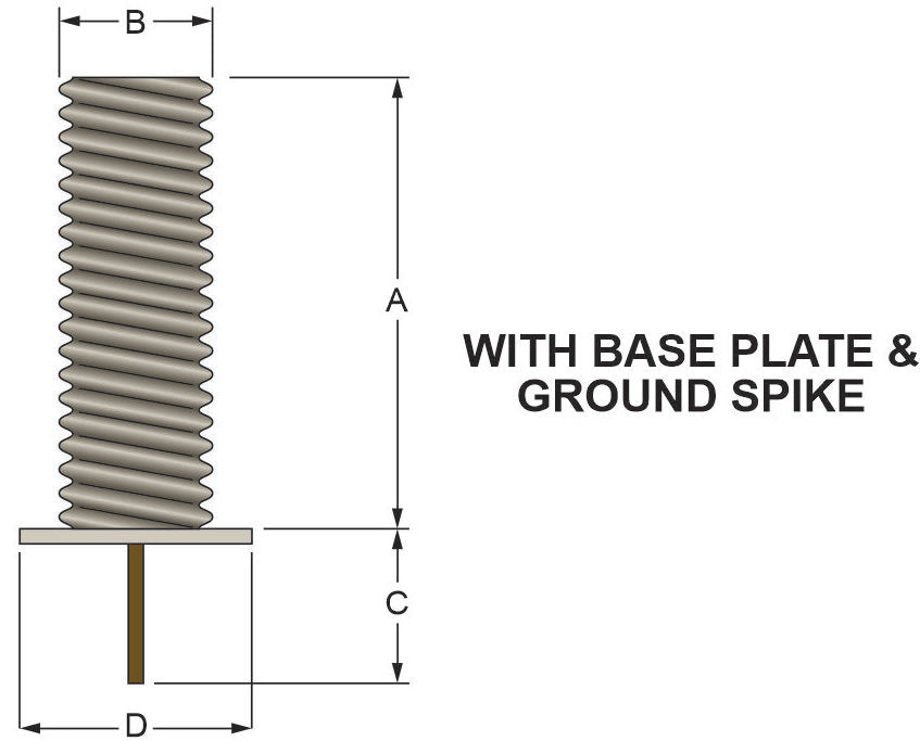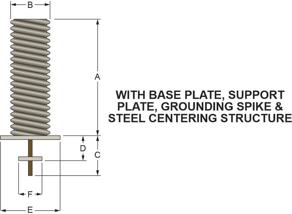 Sleeves with a 6" diameter are supplied with a base plate and grounding spike. Sleeves with a diameter of greater than 6" are supplied with a base plate, support plate, grounding spike and, for ease of vertical alignment, steel centering structure welded to the inside of the base plate.