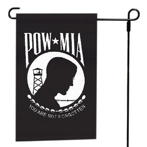 Our 3-Piece black steel Garden Flagpole is designed to display any of our Garden style flags. We offer Garden flags for many Sports Teams, all Military Branches, the POW/MIA flag as well as the U.S. flag. When assembled, the pole measures 35" in height. The arm is about 15" and the ground stake is about 7.5".