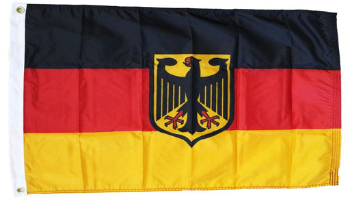 Our Germay with Eagle Flags from Flags Unlimited are available in sizes from 2 feet by 3 feet up to 5 feet by 8 feet. We offer the Germany with Eagle Flag in Durable Nylon material. Indoor Germahy with Eagle flags with a pole sleeve and gold fringe are also available.