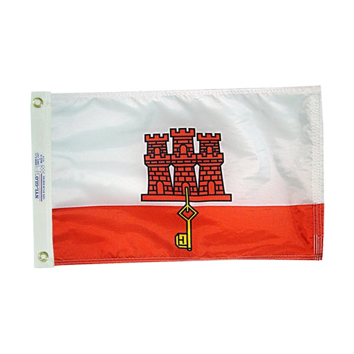 Our Gibraltar Flags from Flags Unlimited are available in sizes from 12 inches by 18 inches up to 5 feet by 8 feet. We offer the Gibraltar Flag in Durable Nylon material or Budget Polyester material. Indoor Gibraltar flags with a pole sleeve and gold fringe are also available.
