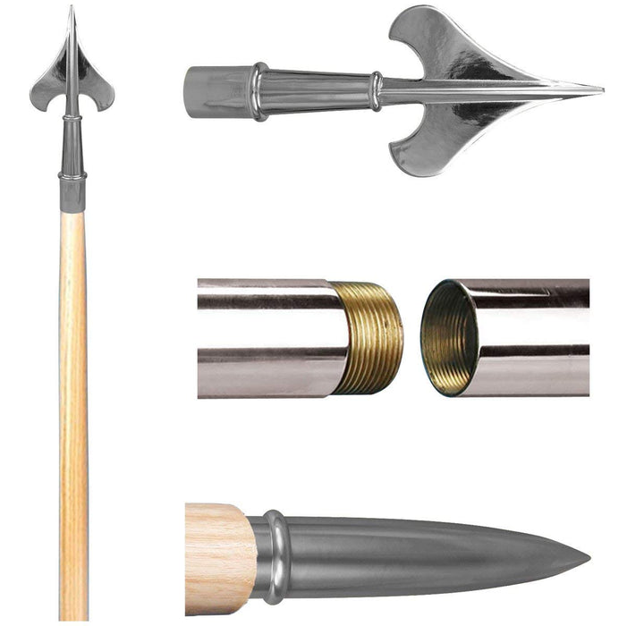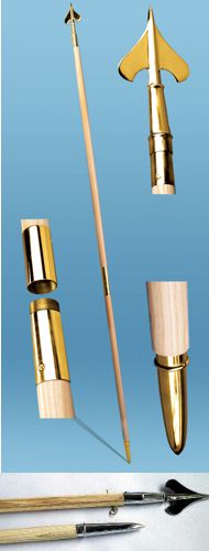 This is the standard guidon staff (pole to display a unit guidon flag) made to military specifications. A two-piece light oak pole with Army spear and bottom-tapered ferrule. Available in either 7', 8' or 9' sizes with brass or chrome accessories. The 7' and 8' poles includes a 7" spear, while the 9' pole includes a 8.5" spear. These guidon staffs are designed to be used in any of the military branches: Air Force, Army, Coast Guard, Marine Corps Navy and Space Force. Also used in ROTC programs or anywhere a guidon flag needs to be displayed.