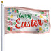 SIZE: 3'x5' Our 3'x5' Happy Easter flag is made from durable nylon material with (2) brass grommets. This durable nylon material is designed for outdoor use and displays the vivid colors of the design.