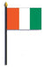 The flag of the Ivory Coast flag features three equal vertical bands of orange (hoist side), white, and green. The design was based on the flag of France; the orange color stands for the land,the savannah found in the northern part and its fertility, the white represents peace, and the green represents hope and also the forest of the southern part of the country. Our international flags are accurately reproduced to exact specifications. The flag has 2 brass grommets on the left edge for hanging. The 4"x6" size is mounted to a staff with a spear top. Polyester flags are imported and not recommended for prolonged outdoor use. For outdoor use, we recommend our nylon flags. Also available below is an indoor/ceremonial version of the flag with a pole sleeve and gold fringe.