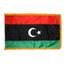 During the Libyan civil war against the rule of Muammar Gaddafi, the 1951–1969 flag – came back into use in areas held by the Libyan opposition and by protesters at several Libyan diplomatic missions abroad. The National Transitional Council, formed on 27 February 2011, adopted the flag previously used in Kingdom of Libya between 1951 and 1969 as the "emblem of the Libyan Republic". Our international flags are accurately reproduced to exact specifications. The flag has 2 brass grommets on the left edge for hanging. The 4"x6" size is mounted to a staff with a spear top. Polyester flags are imported and not recommended for prolonged outdoor use. For outdoor use, we recommend our nylon flags. For outdoor use, we recommend our nylon flags. Also available below is an indoor/ceremonial version of the flag with a pole sleeve and gold fringe.