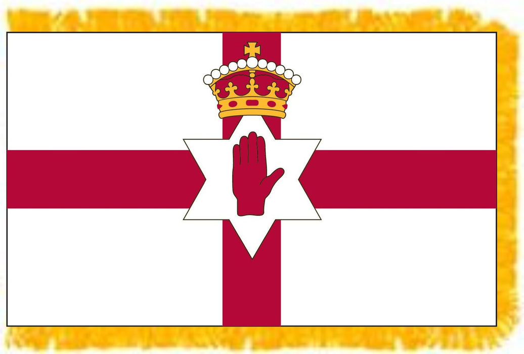 Northern Ireland has not had its own unique government sanctioned flag since 1972, when its government was prorogued. Due to the division of the population along religious and political lines, a wide variety of flags can be seen flying from lampposts and private houses across Northern Ireland. Our international flags are accurately reproduced to exact specifications. The flag has 2 brass grommets on the left edge for hanging. Also available below is an indoor/ceremonial version of the flag with a pole sleeve and gold fringe.