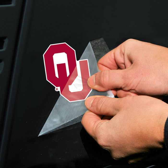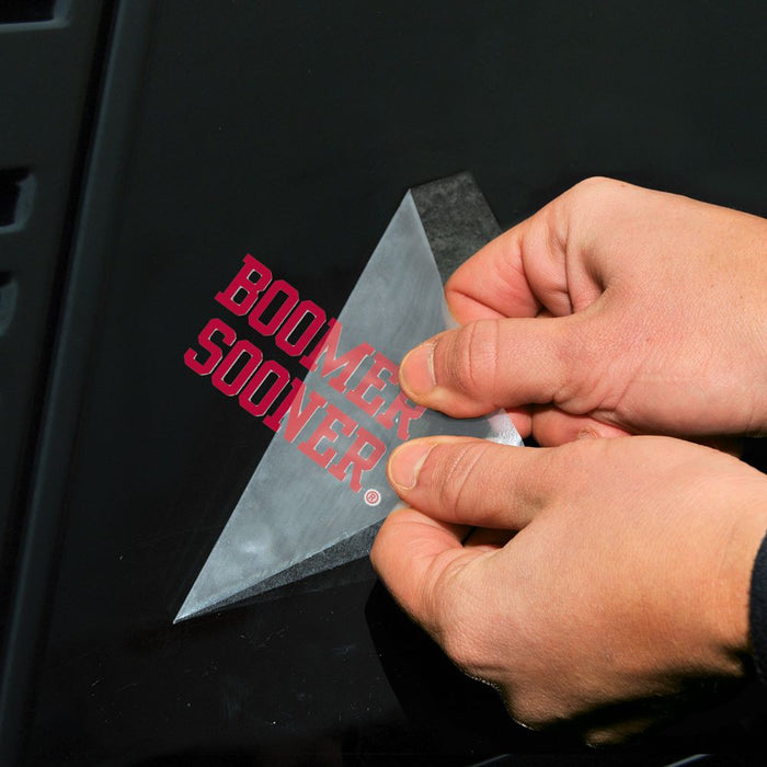This set of two (2) licensed 4"x4" Oklahoma Sooners Die Cut decals are made of outdoor vinyl, permanent adhesive, image cut to the outside dimension of logo, full color detail is printed with a 3 year outdoor rating. Supplied with a clear liner, clear transfer tape, and application instructions are on the back of the card and online.