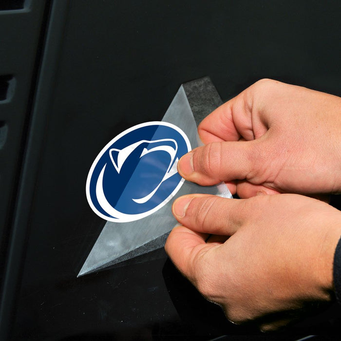 This set of two (2) licensed 4"x4" Penn State Nittany Lions Die Cut decals are made of outdoor vinyl, permanent adhesive, image cut to the outside dimension of logo, full color detail is printed with a 3 year outdoor rating. Supplied with a clear liner, clear transfer tape, and application instructions are on the back of the card and online.