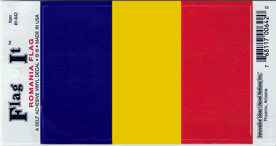 The national flag of Romania is a tricolour of three equal vertical bands of blue (hoist side), yellow, and red. The current form of the flag was officially adopted on December 27, 1989.The three colors are considered to stand for the three historical provinces of Romania, as a symbol of unity: Moldova, Þara Româneascã and Transilvania. Our international flags are accurately reproduced to exact specifications. The flag has 2 brass grommets on the left edge for hanging. The 4"x6" size is mounted to a staff with a spear top. Also available below is a Waterproof Vinyl Decal (suitable for outdoor use). Polyester flags are imported and not recommended for prolonged outdoor use. For outdoor use, we recommend our nylon flags. Also available below is an indoor/ceremonial version of the flag with a pole sleeve and gold fringe.