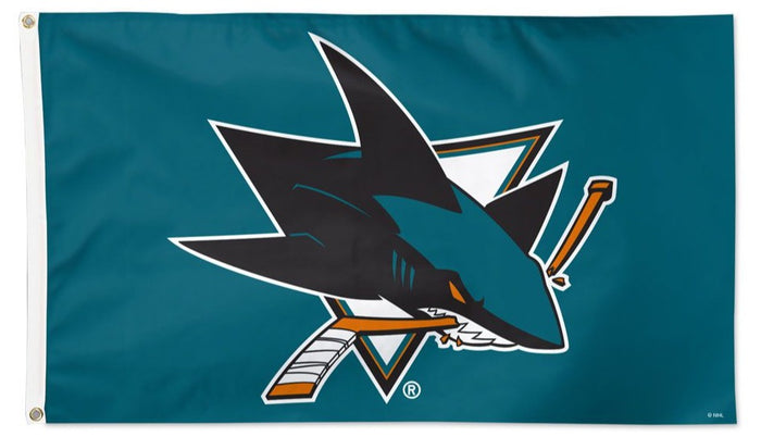 Cheer for the Sharks with this high-quality, official 3'x5' flag! Made of durable polyester, it's perfect for displaying at home or at the game. The two brass grommets on the left edge make hanging easy. Show your team support and get yours today!
