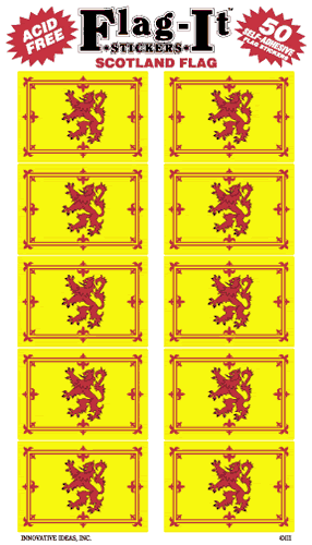 Also available is a pack of (50) 1" x 1 ½" Scotland Lion flag stickers printed on high quality paper stock.