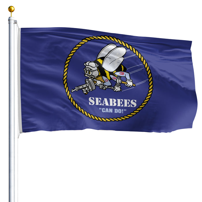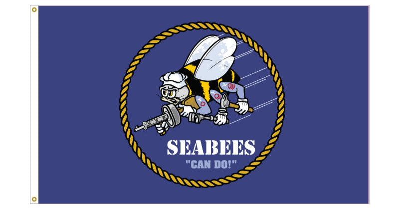 SIZE: 3'x5' This officially licensed 3'x5' Seabees flag is perfect for any Veteran or enlisted person. Two grommets are on the left edge of the flag for hanging. Available in nylon material (Made in the USA), or polyester material (imported). Also available is a Vinyl Decal (suitable for outdoor use).