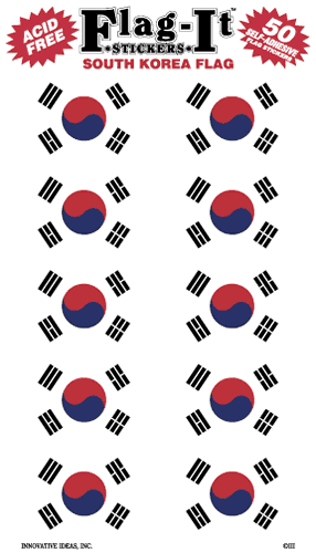 Also available is a pack of (50) 1" x 1 ½" South Korea flag stickers printed on high quality paper stock.