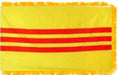 Our South Vietnam Flags from Flags Unlimited are available in sizes from 4 inches by 6 inches up to 5 feet by 8 feet. We offer the South Vietnam Flag in Durable Nylon material or Budget Polyester material. Indoor South Vietnam flags with a pole sleeve and gold fringe are also available.