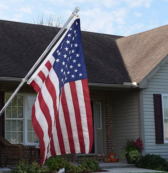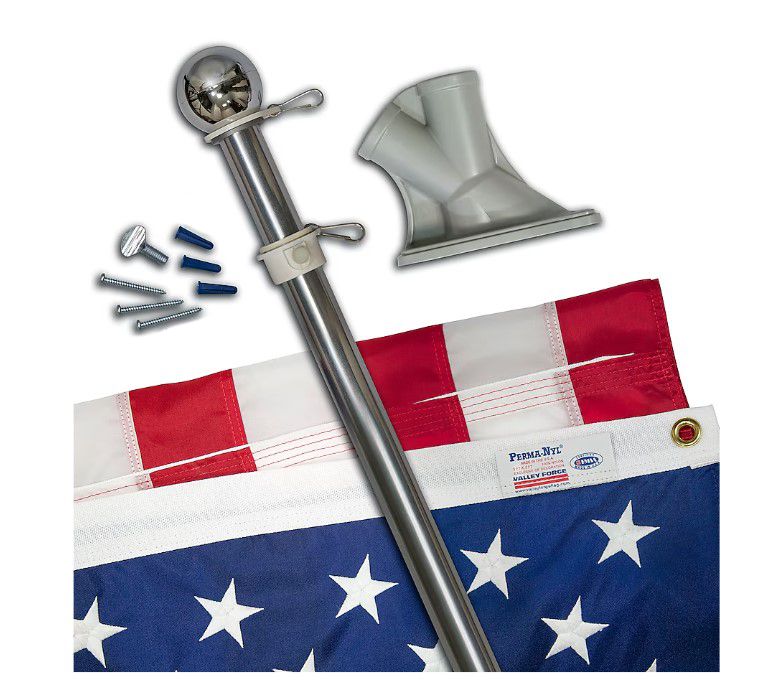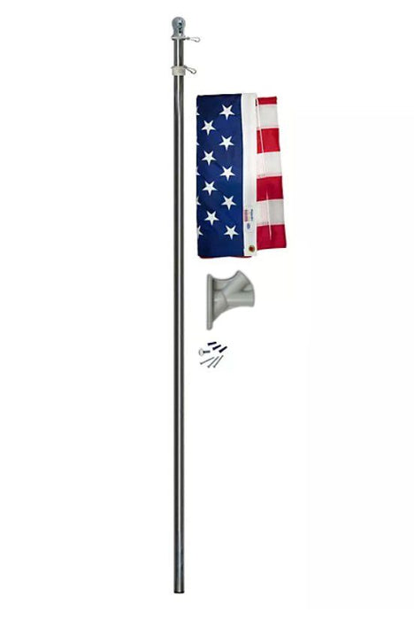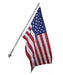 This U.S. Flag Kit features a 6'x1.25" one-piece aluminum flagpole. A 3'x5' Nylon flag is included. Two Anti-Tangle flag rings and 2-position HDPE bracket makes for easy display!