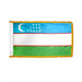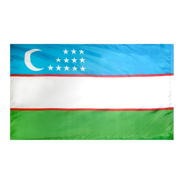 Our Uzbekistan Flags from Flags Unlimited are available in sizes from 4 inches by 6 inches up to 5 feet by 8 feet. We offer the Uzbekistan Flag in Durable Nylon material or Budget Polyester material. Indoor Uzbekistan flags with a pole sleeve and gold fringe are also available.
